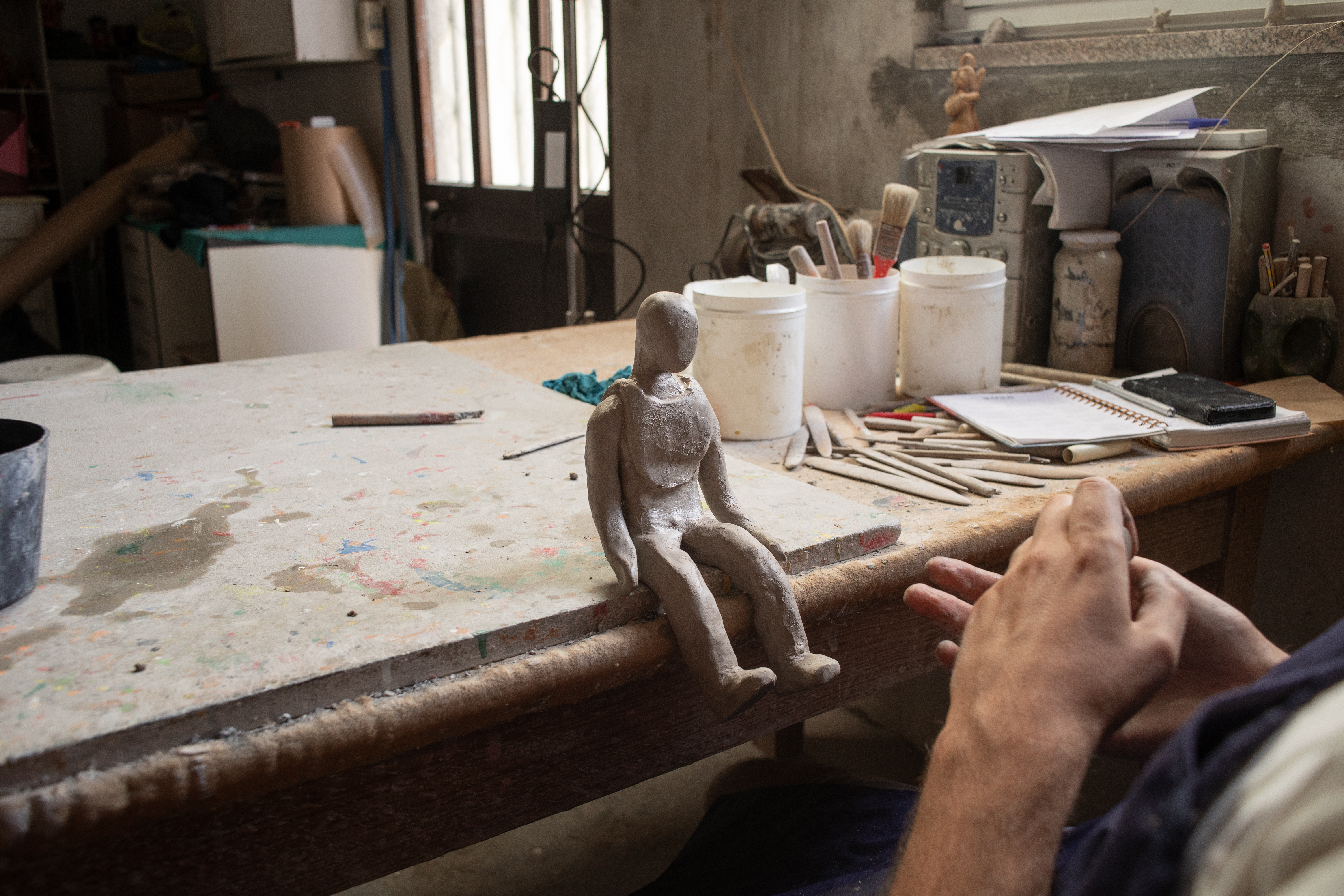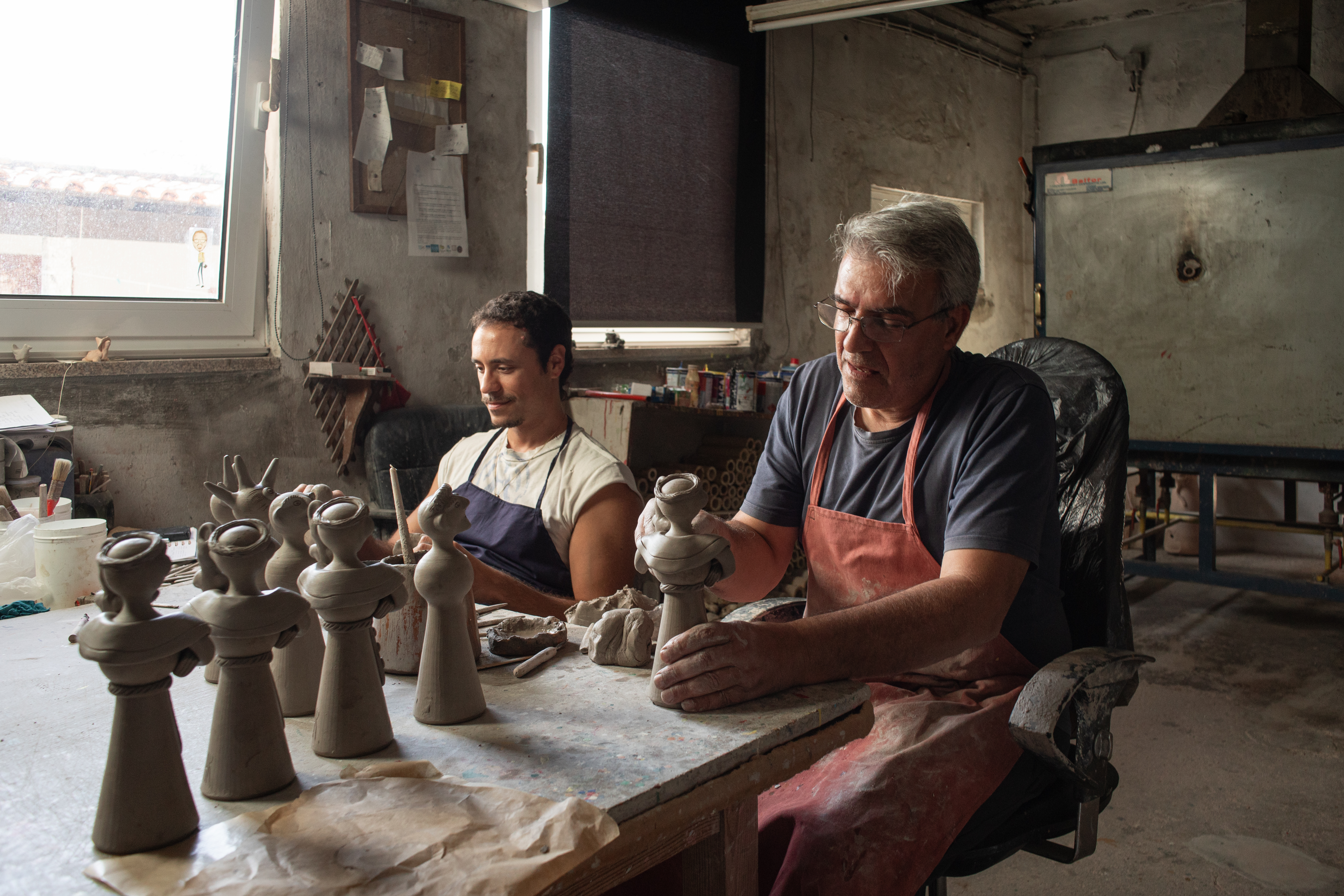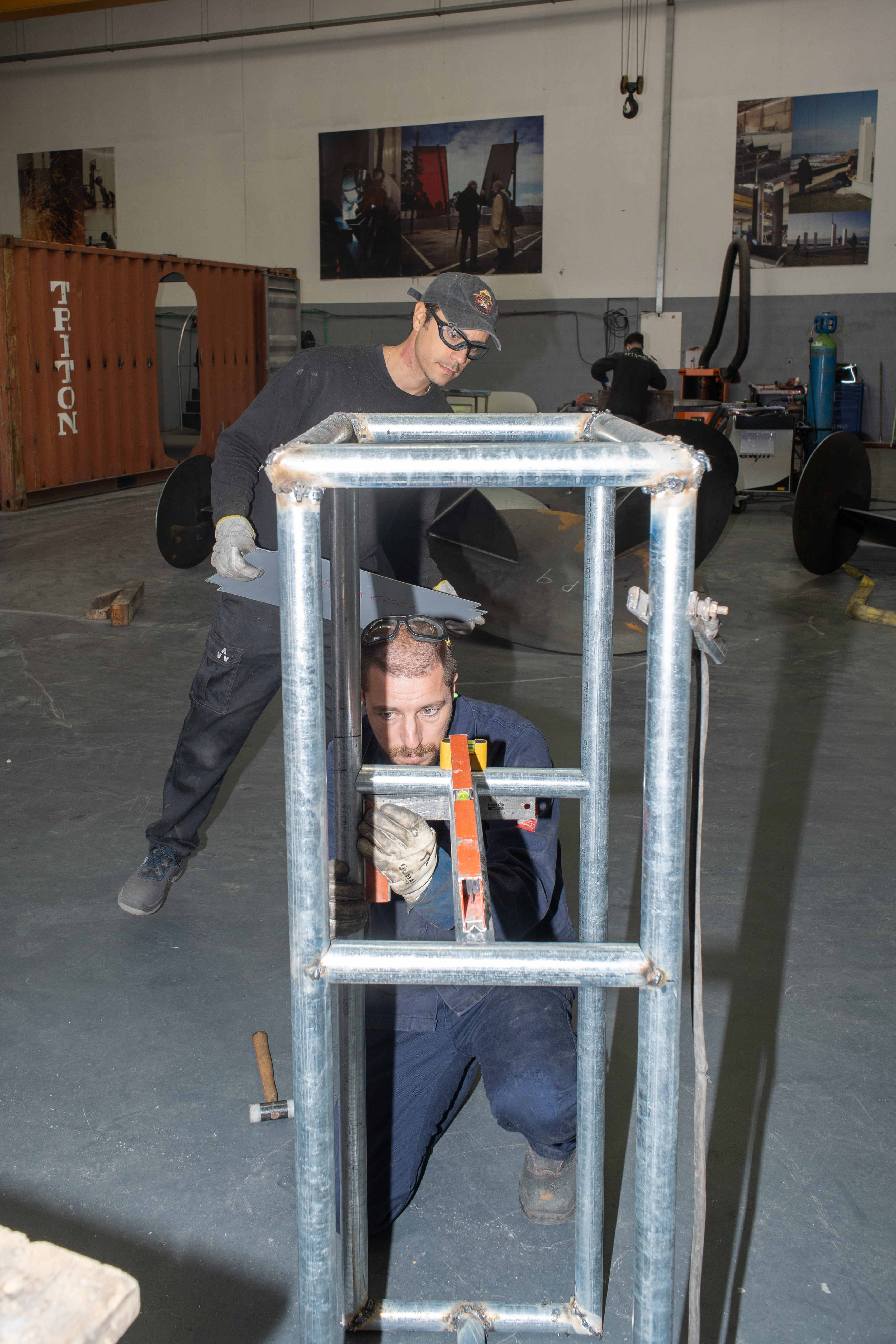Pedro Moreira’s mini-residency was born out of a partnership with the Barlos Festival. Over the course of two weeks, the artist, with the support of the ArtWorks technicians, developed three metal structures using surplus materials from the factory. These exhibition elements were used to display the works produced during the residency with craftsman António Ramalho, at Galeria Aurora in Barcelos, where the exhibition will be on view until October 25.