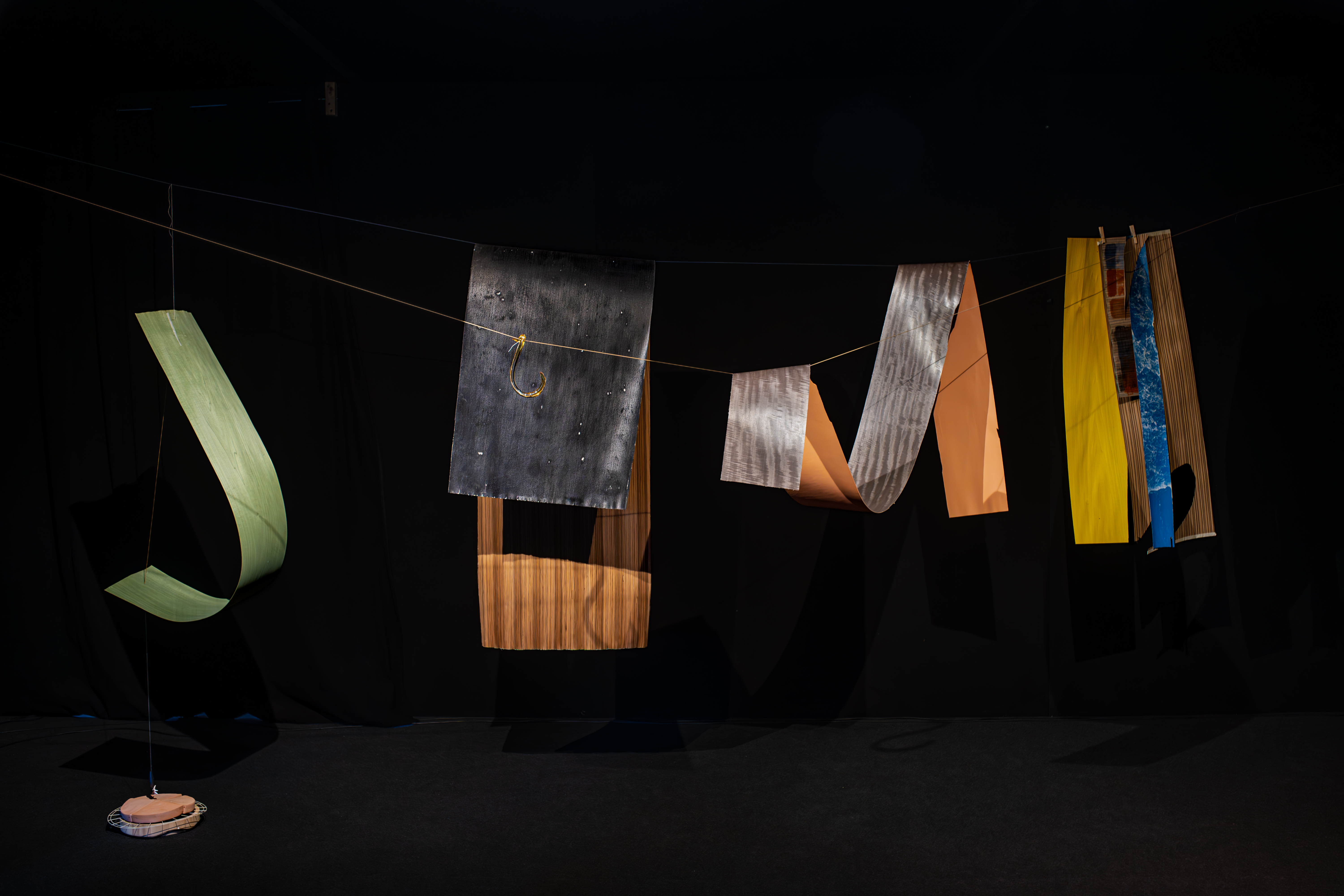 recursos: madeira, poliureia, latão, vidro, bunho, corda e material electrónico