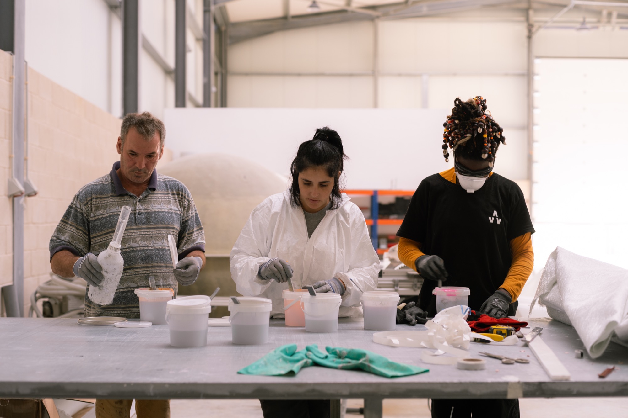 Temos equipamento especializado e várias oficinas coordenadas por uma equipa multidisciplinar composta por arquitectos, designers, engenheiros, artistas, fotógrafos, artesãos e técnicos industriais. Podemos fornecer material sobrante de outras produções, fragmentos de peças, objectos sem uso ou danificados ou até o pó/resíduos gerados pelo desbaste de materiais. Cada residência começa com a descoberta da riqueza dos diferentes ofícios presentes no nosso espaço: os seus gestos, o seu vocabulário, as suas ferramentas e as suas técnicas podem ser interceptadas segundo diferentes entendimentos. As várias fases de residência contemplam o acompanhamento artístico, a análise e desenvolvimento técnico e material do projecto, passando pelo apoio na fabricação e registo audiovisual de cada residência.