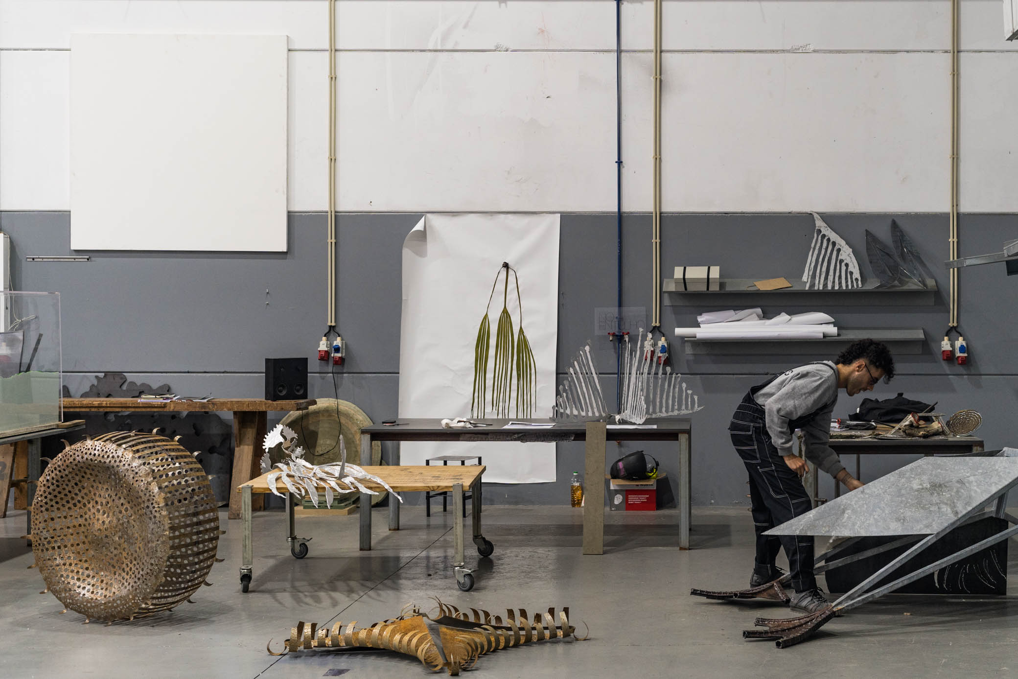 Temos equipamento especializado e várias oficinas coordenadas por uma equipa multidisciplinar composta por arquitectos, designers, engenheiros, artistas, fotógrafos, artesãos e técnicos industriais. Podemos fornecer material sobrante de outras produções, fragmentos de peças, objectos sem uso ou danificados ou até o pó/resíduos gerados pelo desbaste de materiais. Cada residência começa com a descoberta da riqueza dos diferentes ofícios presentes no nosso espaço: os seus gestos, o seu vocabulário, as suas ferramentas e as suas técnicas podem ser interceptadas segundo diferentes entendimentos. As várias fases de residência contemplam o acompanhamento artístico, a análise e desenvolvimento técnico e material do projecto, passando pelo apoio na fabricação e registo audiovisual de cada residência.